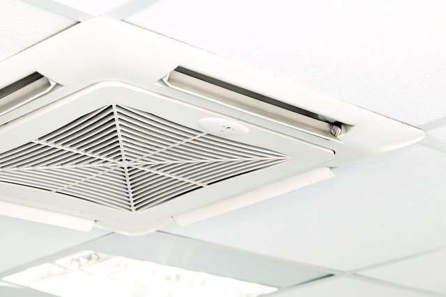 このタイプは天井の照明でスペースがない場合や店舗が狭く壁を有効に使いたい場合、エアコンを目立たせたくないインテリア重視の場合におすすめです。メリットは4方向から送風できるので温度ムラができにくいことと、インテリアの雰囲気を損なわないことで、デメリットは天井に穴を開けることと設置工事費が他に比べて高いことです。